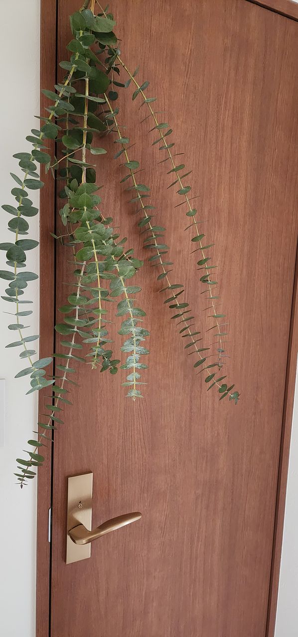 ユーカリは香りも良く、ボリュームもあってリビングを爽やかに彩ってくれて素晴らしい👍 ですが、一つ忘れていたことがペットの猫にはよくないということでした💦 猫が噛んだり舐めたりしては大変なので、残念ながらリビングから玄関に移動させて猫が出入りできないようにしました