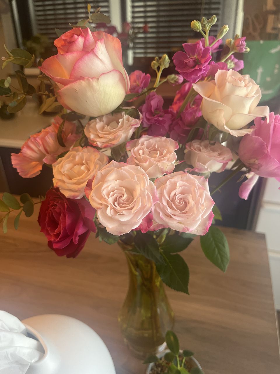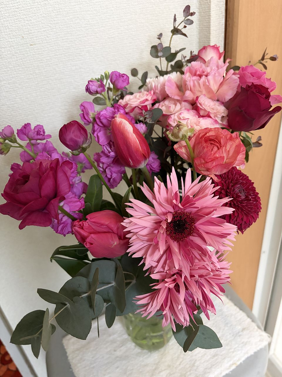 ピンク系のボリュームたっぶりなお花でした😊多少の好みのお花とそうでないお花はありましたが、それでも総じて満足だったと思います! ありがとうございました💕