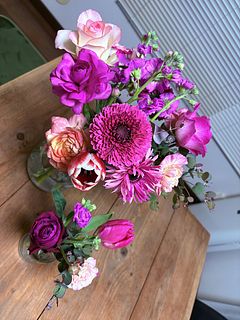 とても素敵💓 一つはガーベラやチューリップ中心のビビットピンク、もう一つはバラやカーネーションのグラデーションピンクの花束でした! リピートします!