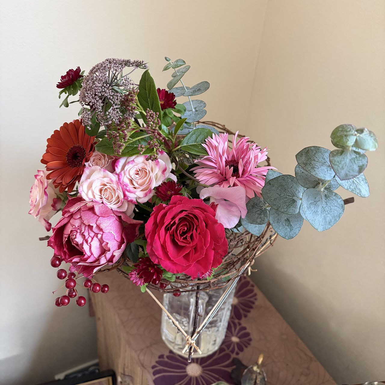 1月の誕生石、ガーネットをイメージしたブーケ❤️