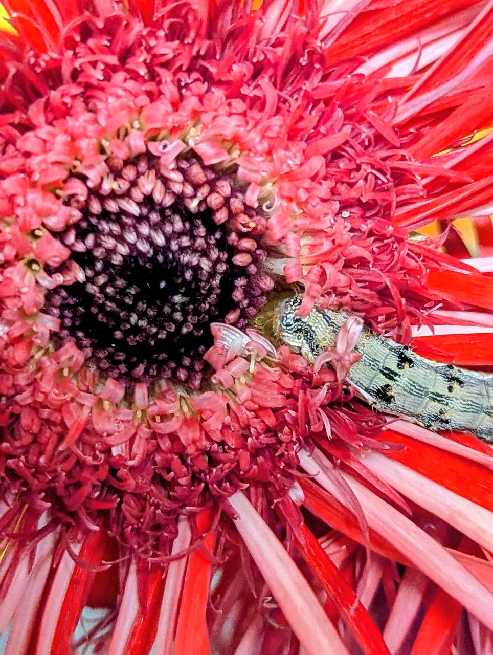 毛虫😭 毛虫がいるなんて想像もしてなかった ガーベラ自体、最初から元気がなかった 数日経って大きく🐛成長して気が付きました 残念だけど処分しました😭 切り花にこんなことあるんですね……… 恐怖しかない😱