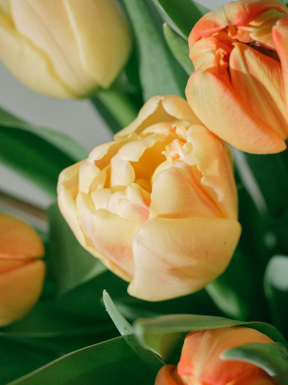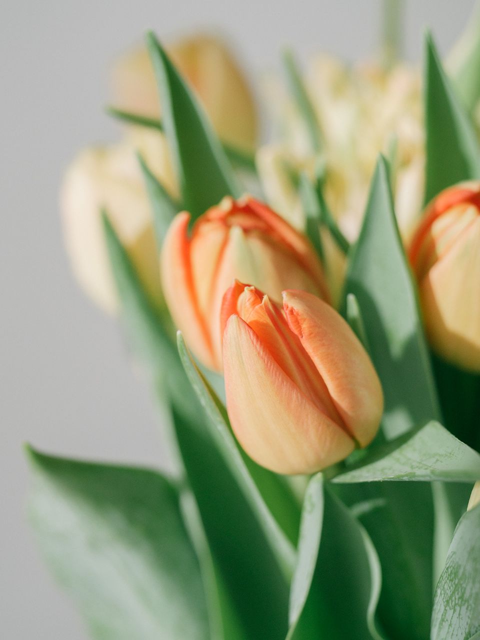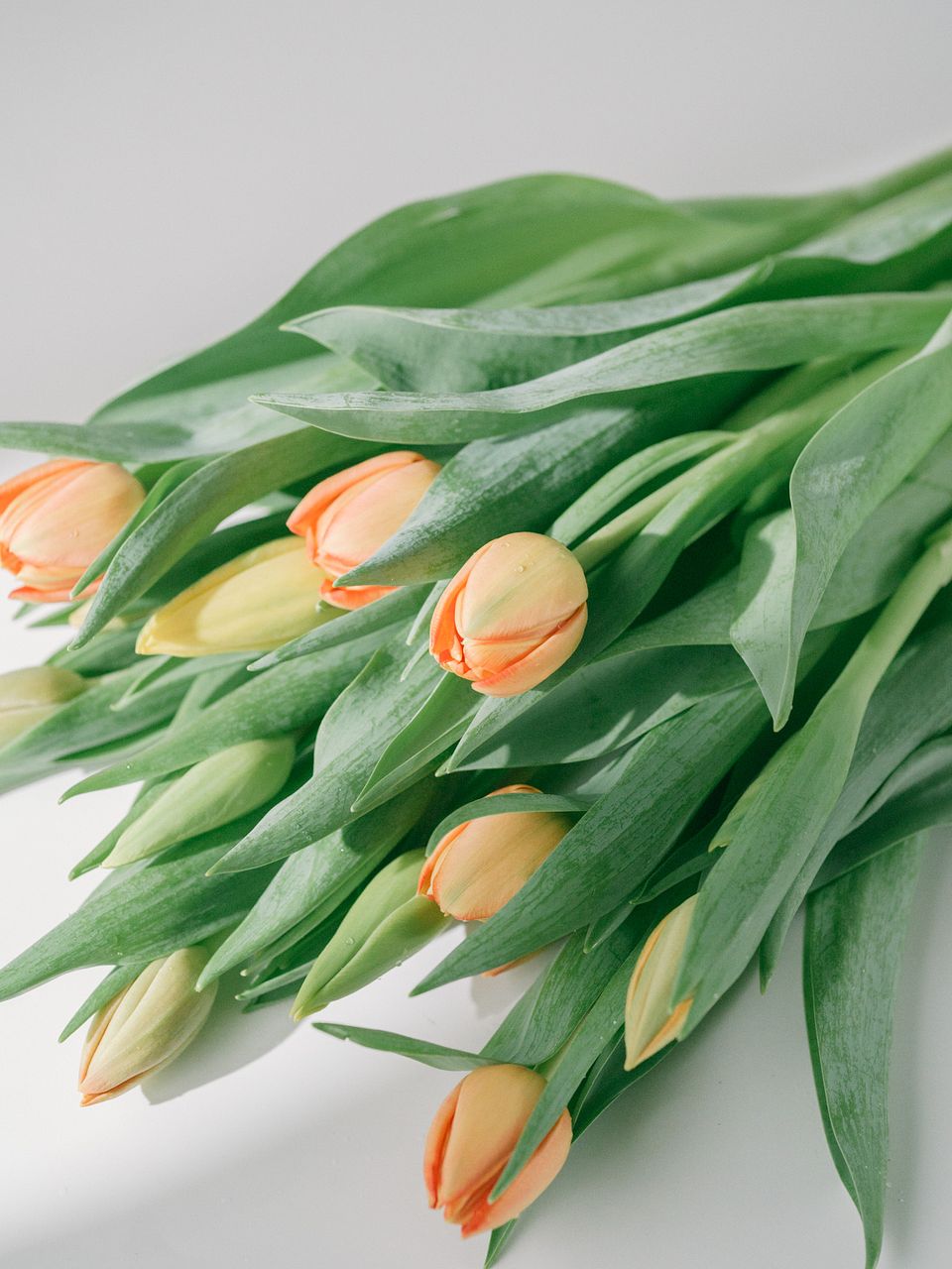 今回は3品種ミックスでお届けします。どんなチューリップが届くかは、箱を開けるまでのお楽しみ。長く楽しめるよう、硬いつぼみの状態でお届けしていることも。水揚げするとふっくら色づきますのでご安心ください。