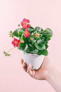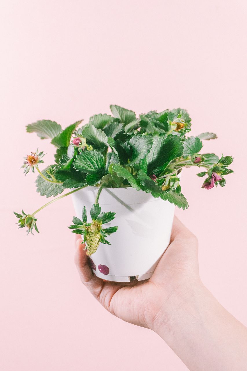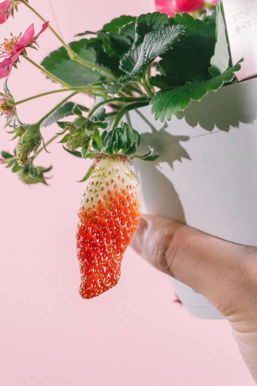 四季咲きいちごはフルーツとしてだけでなく、グリーンとしても楽しめる可愛らしい姿。季節のインテリアにもぴったりです。