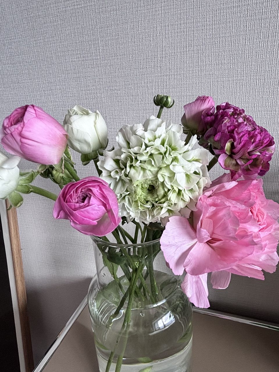 個性的なポンポン咲きのラナンキュラス「アリス」と「マルヴァ」「キャスパー」を豪華に束ねたラナンキュラスアソート🩷