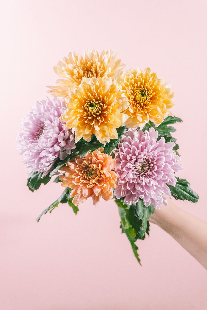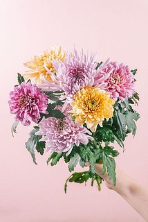 淡いペールトーンが魅力的な、希少品種の春色マムを贅沢に束ねたブーケ🌸
