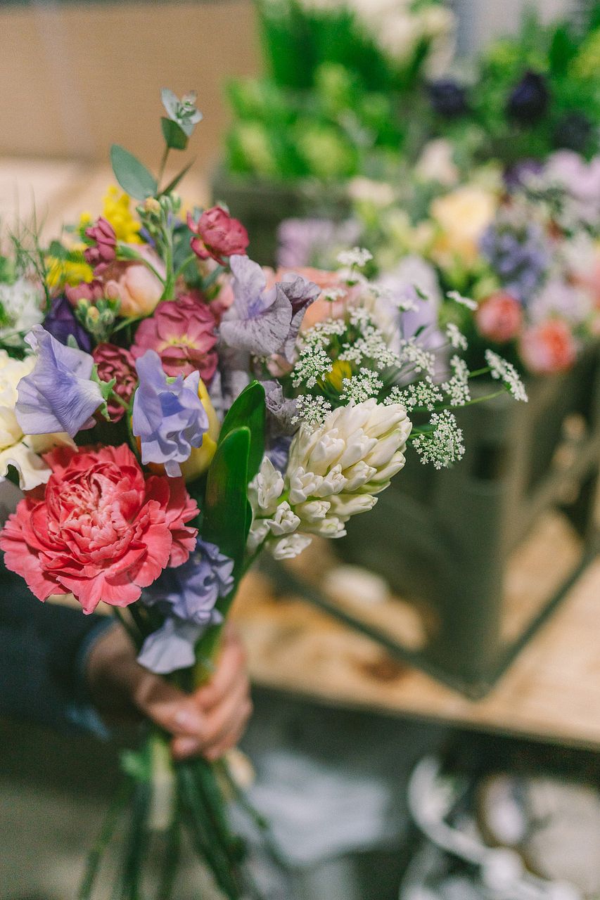 ヒヤシンスをメインに香る春のお花を束ねました✨