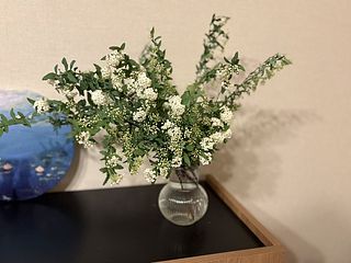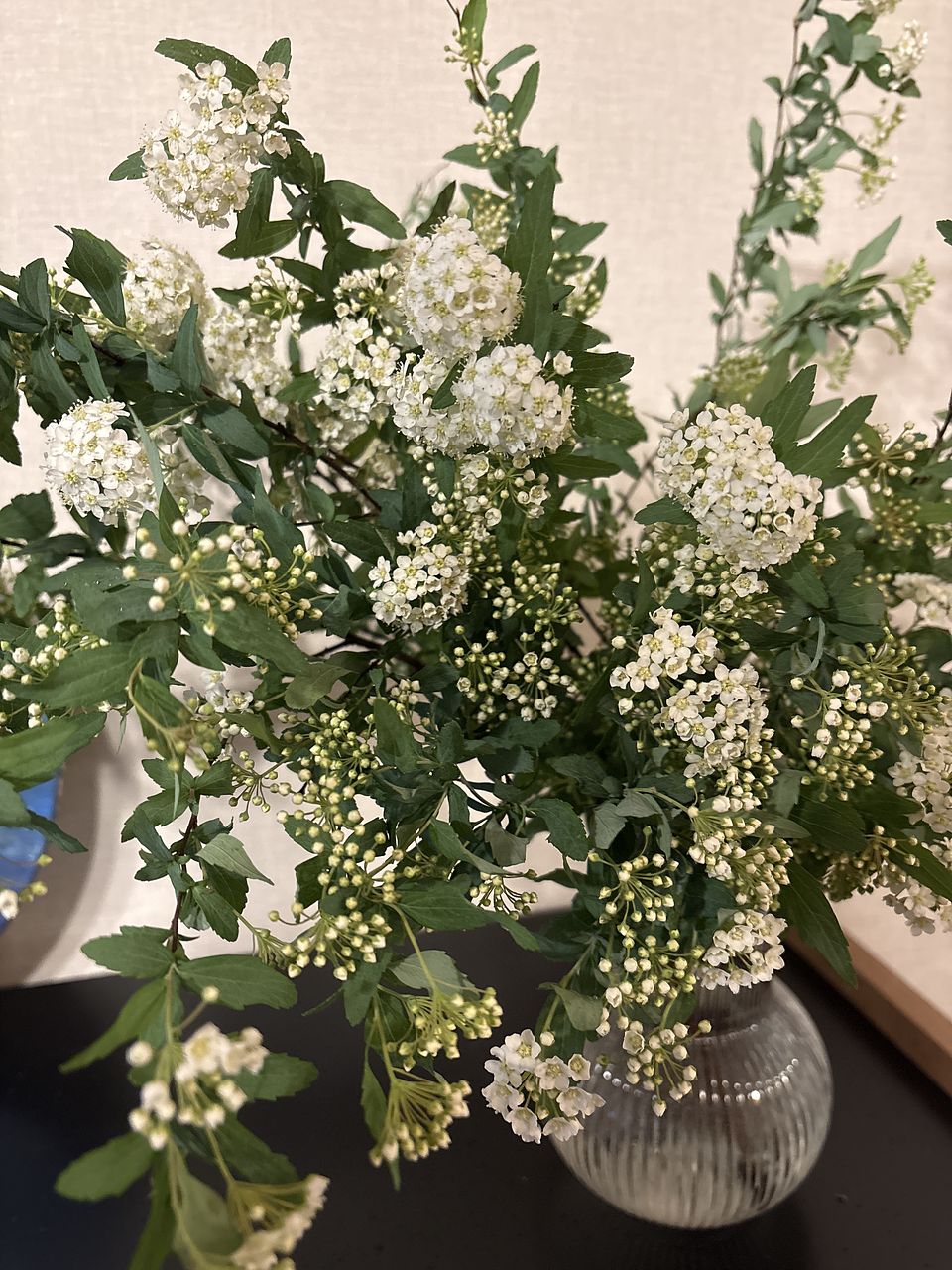 白くて小さなお花がかわいい🕊️春の枝物「コデマリ」。だんだんと開花してゆく姿を楽しんで。
