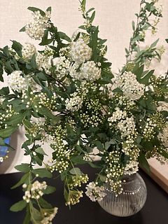 小手毬を通販で購入するのは初めてです。到着時は細い束で少し心配でしたが、長い目にしっかり水揚げしてふわふわに。 3日目の様子です。花もたくさん咲いて、とても可愛いです。