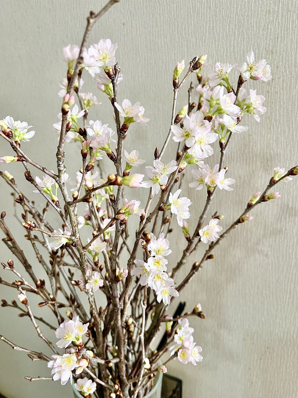 たっぷりの桜を花器にまとめて飾って、一足早くお花見気分を楽しんで🍡