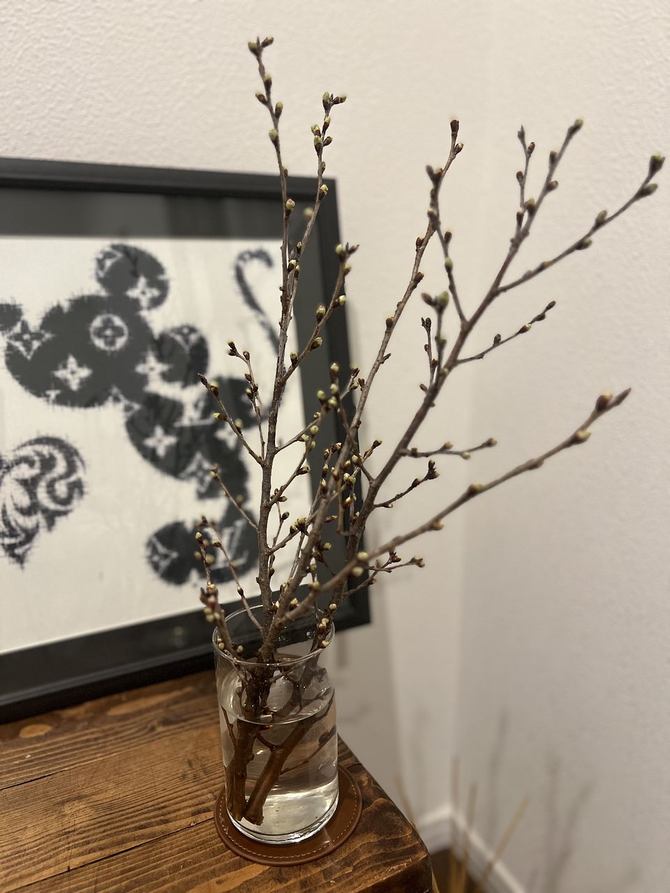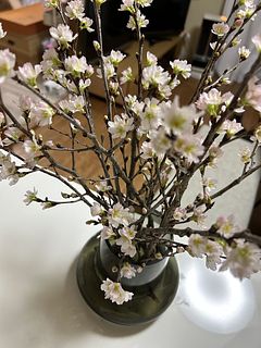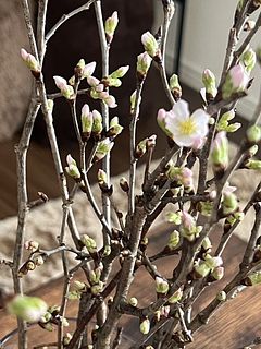 新春から春を感じたくて頼みました。枝の本数が多いので咲くのが楽しみです。まだ蕾なのでどのくらい咲いてくれるかな?