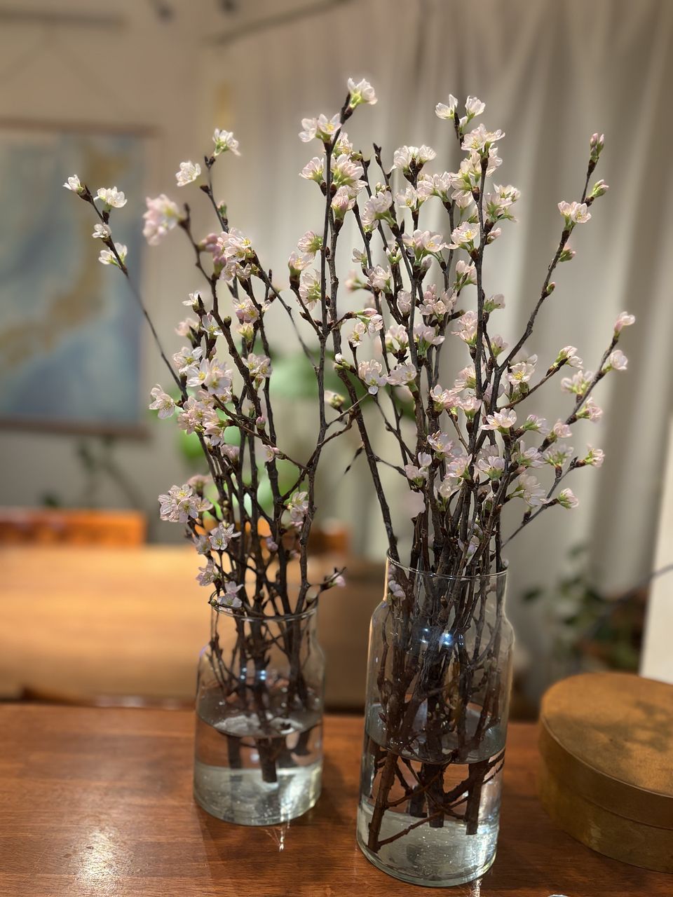 お花の中では桜が1番好きなので、お家で桜が楽しめるなら!と購入しました。配達時、配送の方に「横に倒してしまったので、念の為中身を確認してください」と言われ、その場ですぐ確認したのですが全く傷んだりしていませんでした。丁寧に梱包していただいてるおかげですね。丈は短めですがボリュームがあり、ふたつの花瓶に分けて生ました。蕾がたくさん付いていて満開になるのが今から楽しみです!