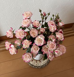とってもフレッシュでプリンセス感のある可愛い薔薇が届きました💓 一本につき5つか6つ、多いのでは7つもお花がついていてボリューミーです。 4本はまとめてリビングに、7つ花がついた一本は寝室に飾りました。 前回注文した薔薇は海外産のもので届いたときにはかなり元気がなく、数日で枯れてしまいましたがこちらは持ちが良さそうです! はるばる空輸されたお花もそれはそれで情緖がありますが、やはりこれからは国内産のものを注文しようと思いました。