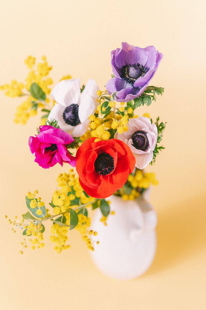 春の人気者、ミモザとアネモネを組み合わせたーケ💛💜