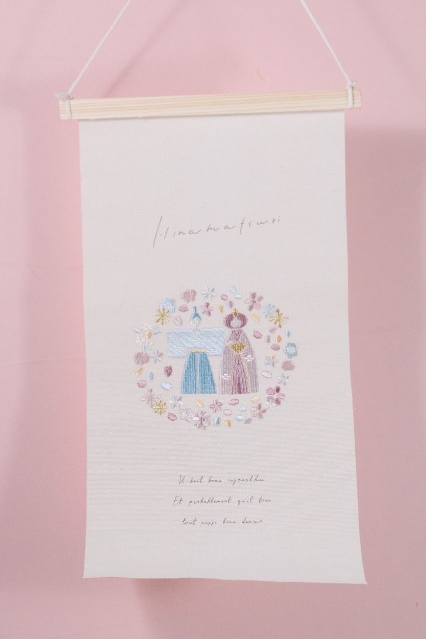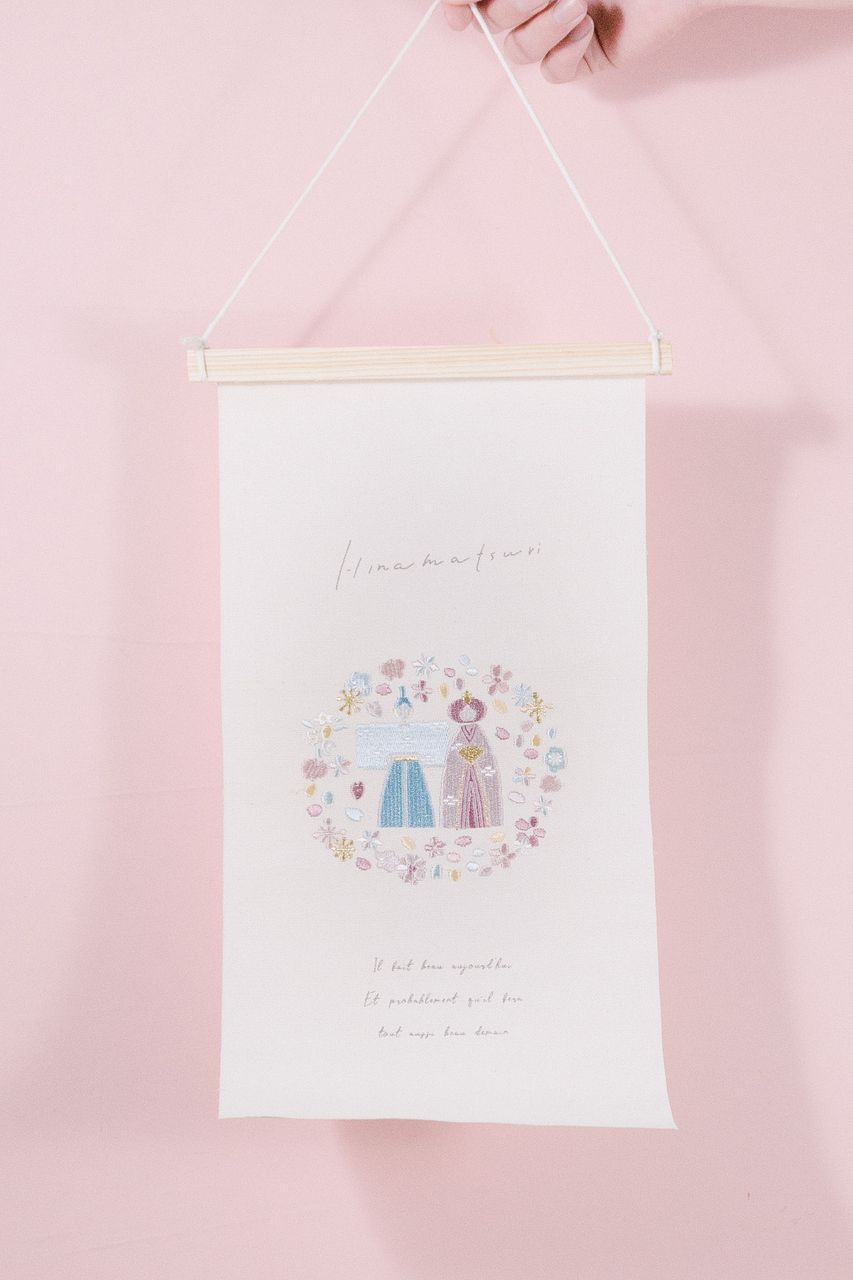 温もりあふれる刺繍の質感と壁掛けができるのでお部屋のスペースを取らないのも魅力です。