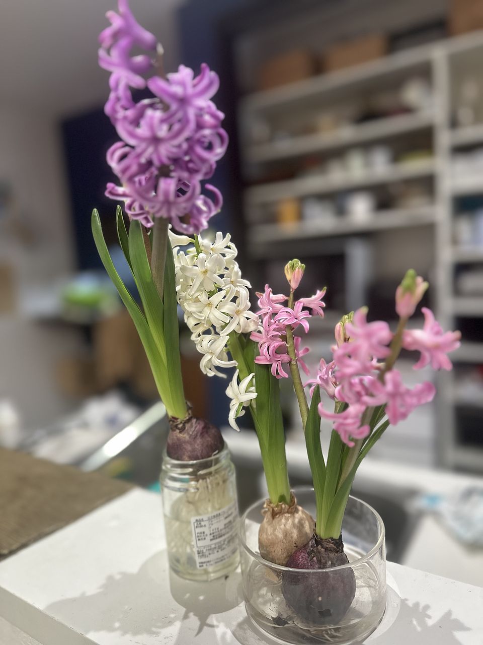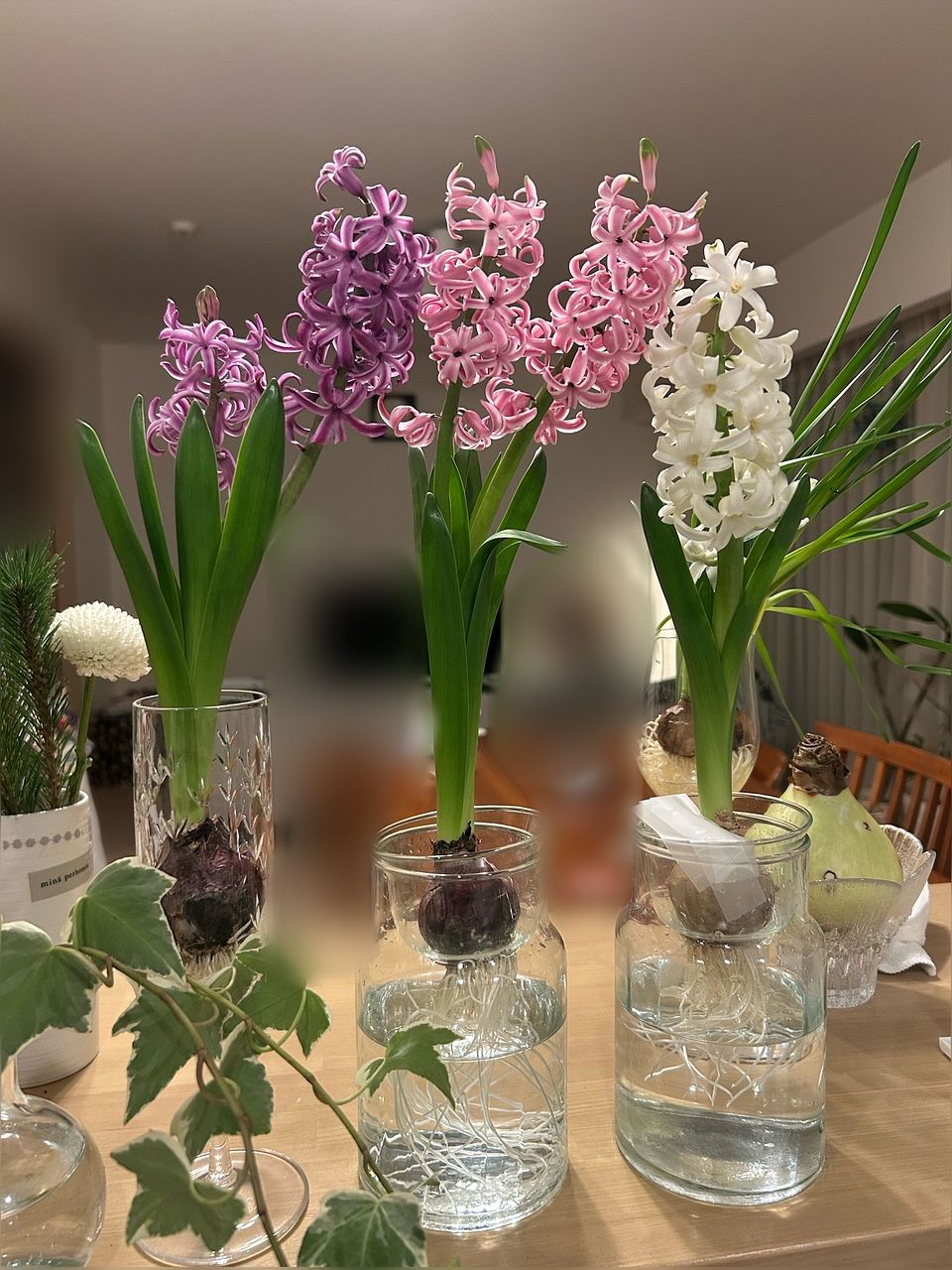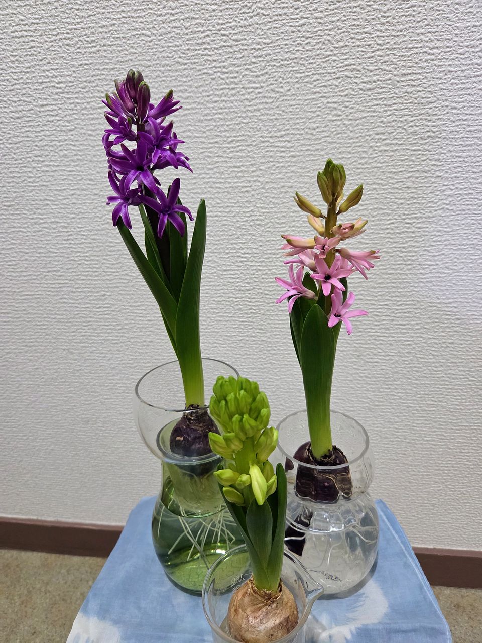 ヒヤシンスの水栽培は、小学生の頃以来です。 毎日観察するのが楽しかったです。スクスク伸びて、綺麗に咲きました。