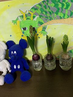ヒヤシンスを育てるのは初めてです。 3つそれぞれどんな色のお花が咲くのか楽しみです。