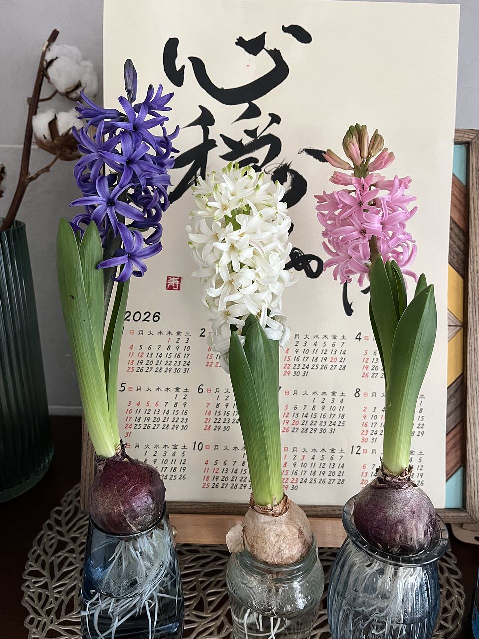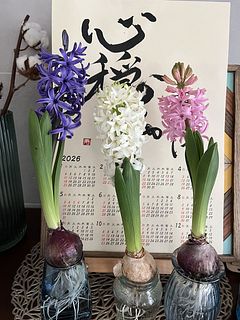 毎年、ヒヤシンスを栽培します。 小さな球根の中で、春が育って行く様子が楽しいですね。そしてある朝突然に、爽やかな香りが漂って来るのです。 今年はアソートで購入出来たので、楽しみもまた格別です。