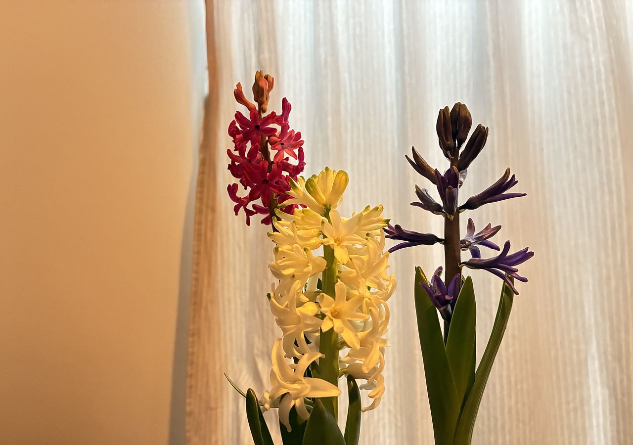 写真と違って、花の数が少なめ、色も思っていたものと違って、ちょっとがっかりです。調べてみたら、写真とは品種が違うヒヤシンスのようでした💦😭でも、大切に育てたいです。