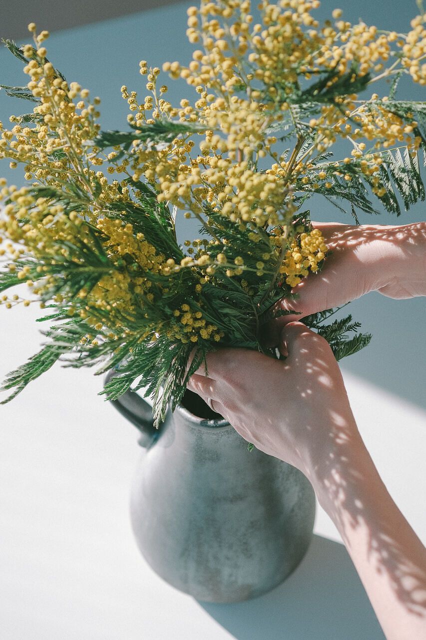 ミモザはイタリアでは「感謝」「思いやり」の花言葉を持ち、3月8日のミモザの日には愛や感謝の気持ちを込めてミモザを贈ります。