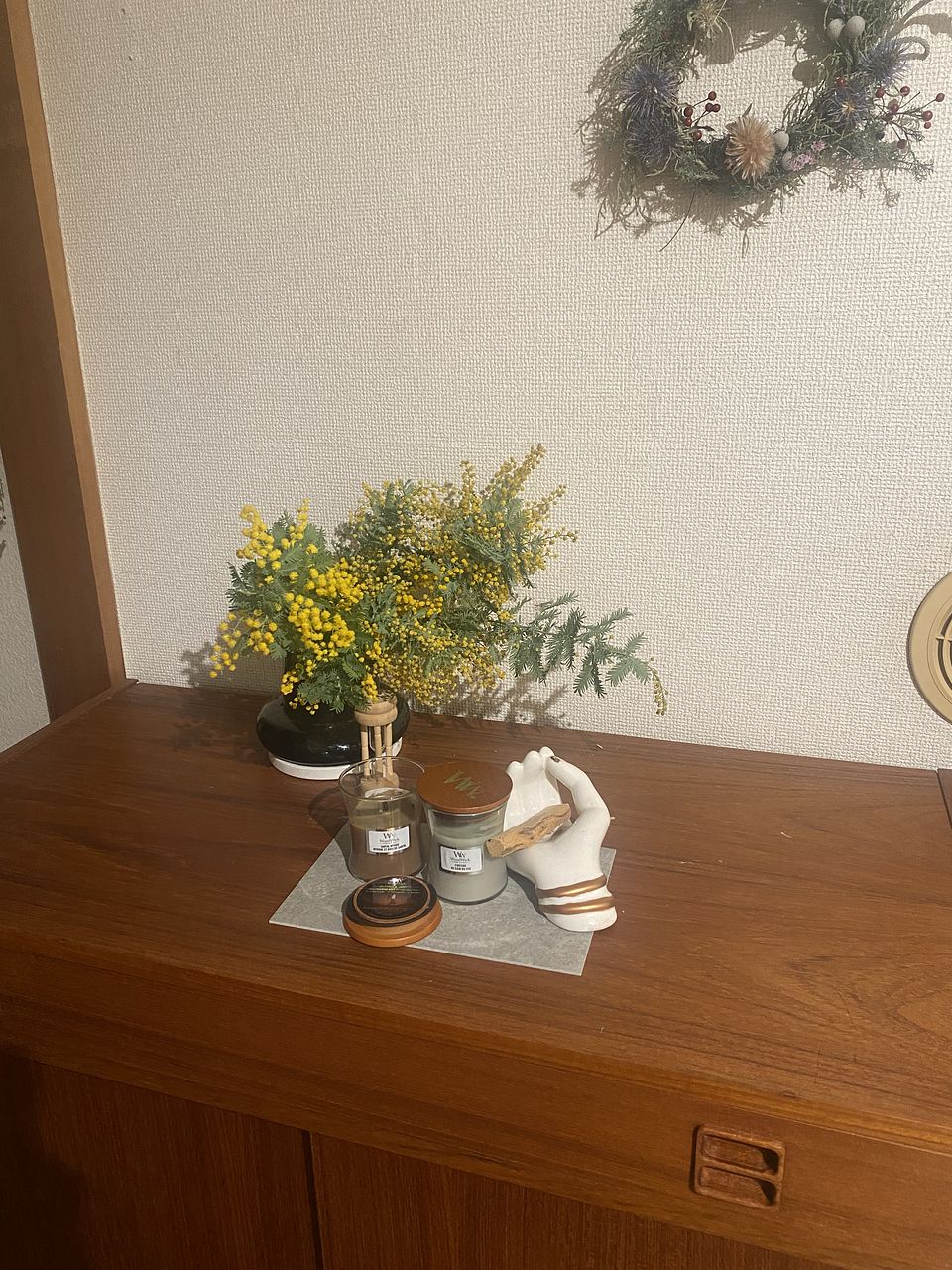 ずっと欲しかったミモザ 花の状態もよく、色鮮やかです。 外は寒いですが、 お部屋の中に春が来たようです。 ビタミンカラーで気分も上がります😊