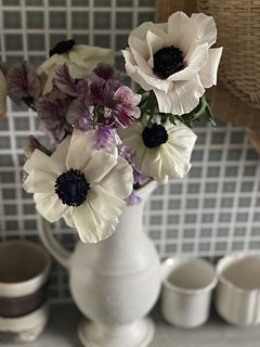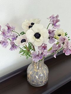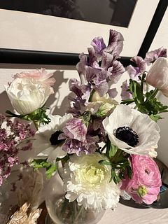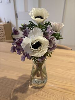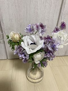 とても素敵なスィートピーとホワイトアネモネが大人かわいい感じでとても気に入りました💕 ちょっと残念だったのが一本のアネモネが折れていて🥲 でも短くして小さな花瓶に一輪挿しにしました☺️ ホワイトアネモネははじめてでしたがいい雰囲気ですね☺️✨
