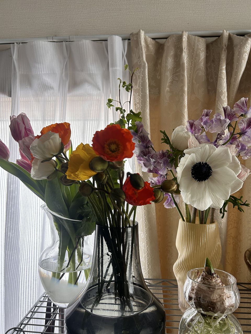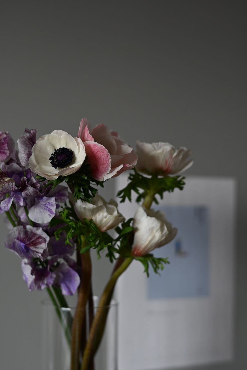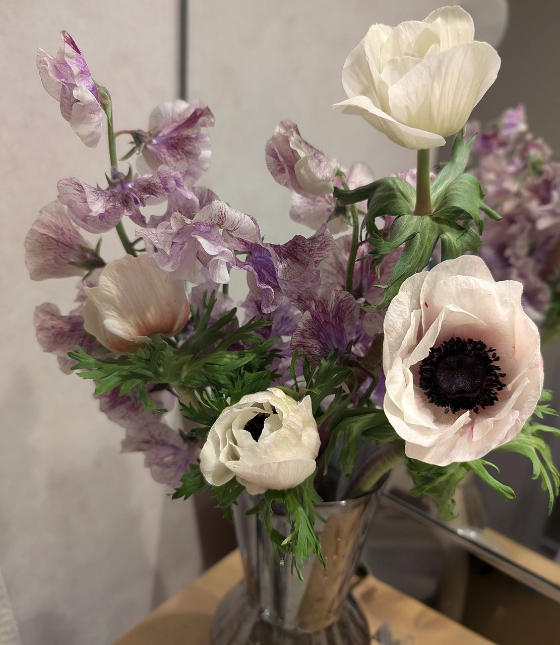 珍しい色合いのスイートピーと立派でしっかりしたアネモネでした🩷香りがほんのりでもう少ししっかり香ってもいいかなぁ。