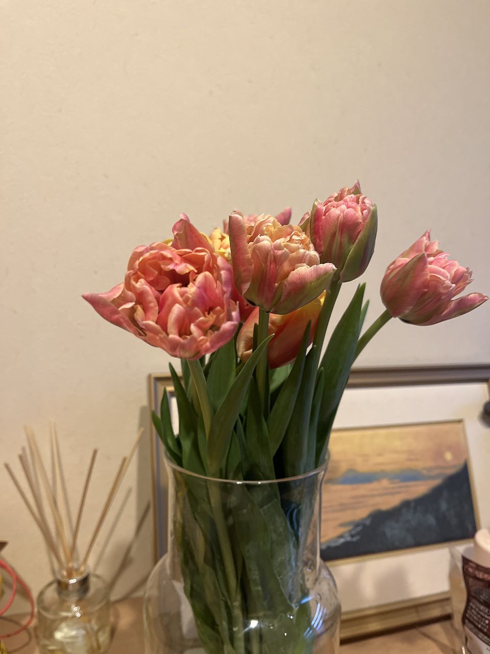 ごきげんなチューリップ「ディージェイパーロット」「ロレンゾ」「デルタサンライズ」「ベロナサンライズ」、4種類を束ねました🤩