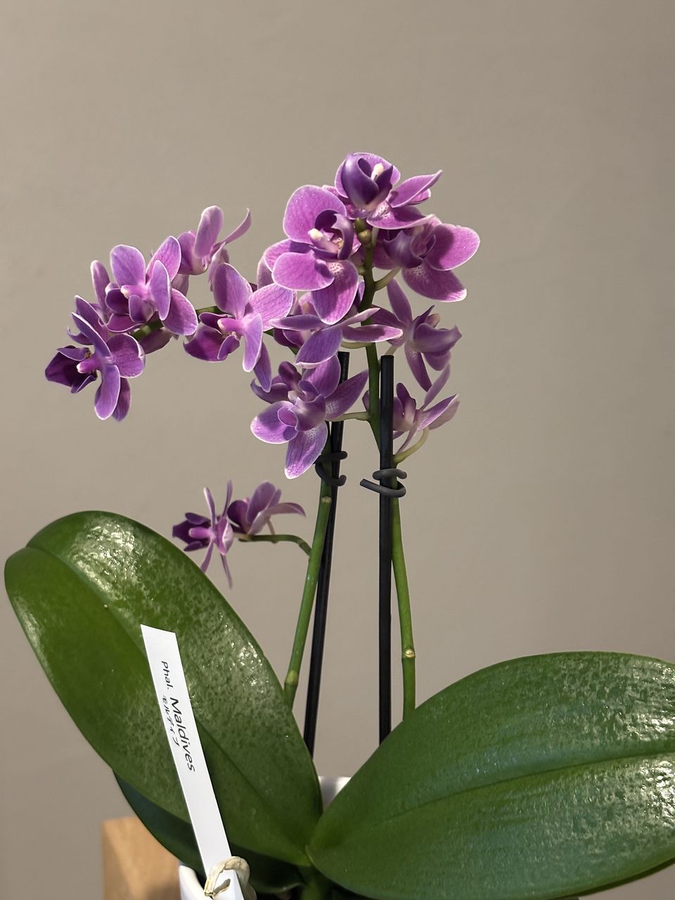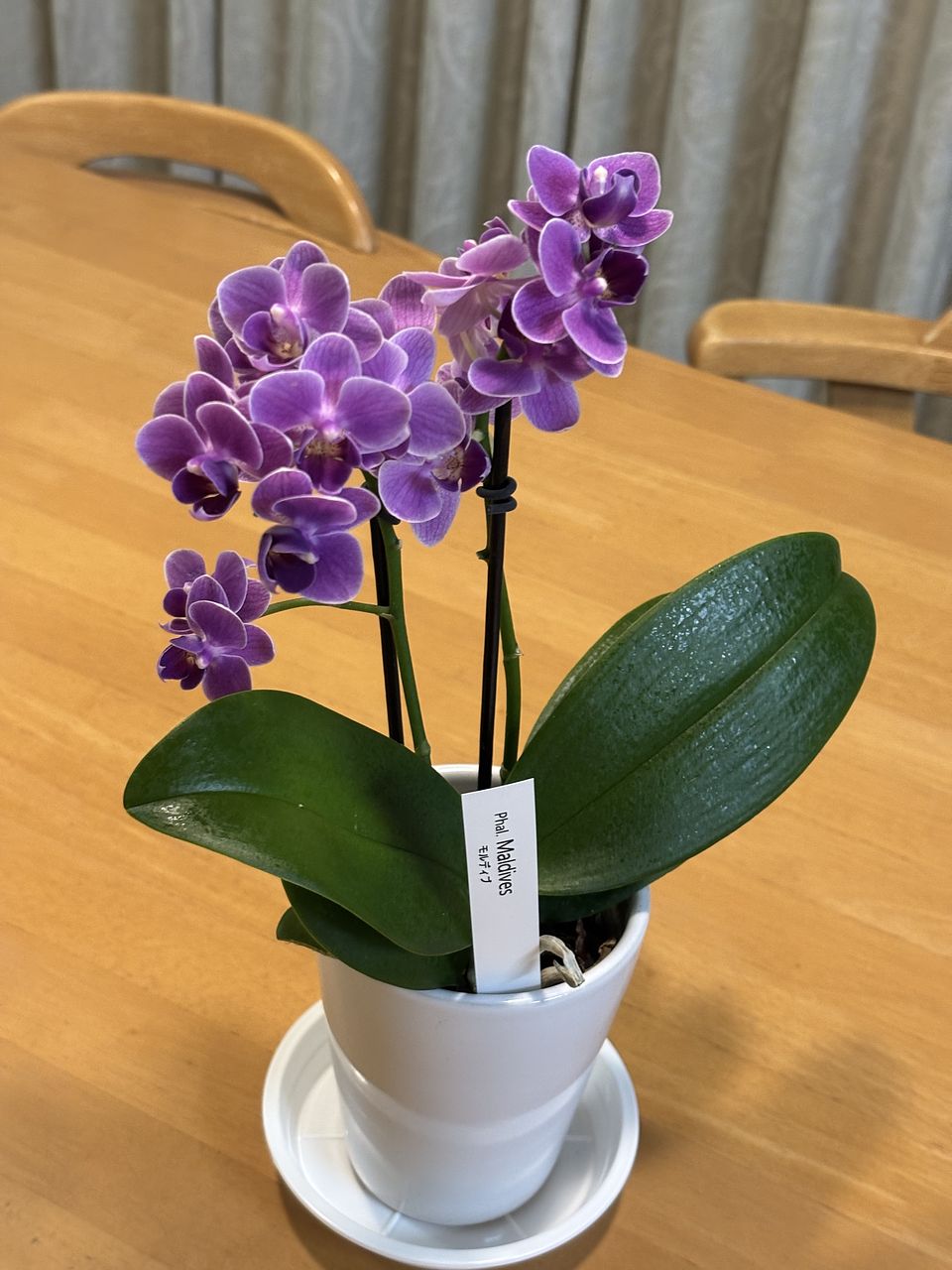 今回は珍しいパープルの胡蝶蘭「モルディブ」。