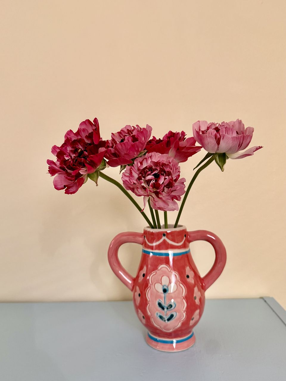 近所やモールの花屋さんではほとんど見かけないラナンキュラスで、嬉しい🎵とても可愛いです♡