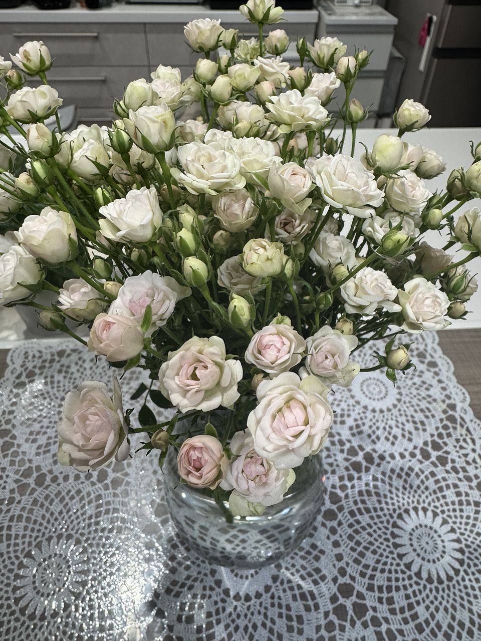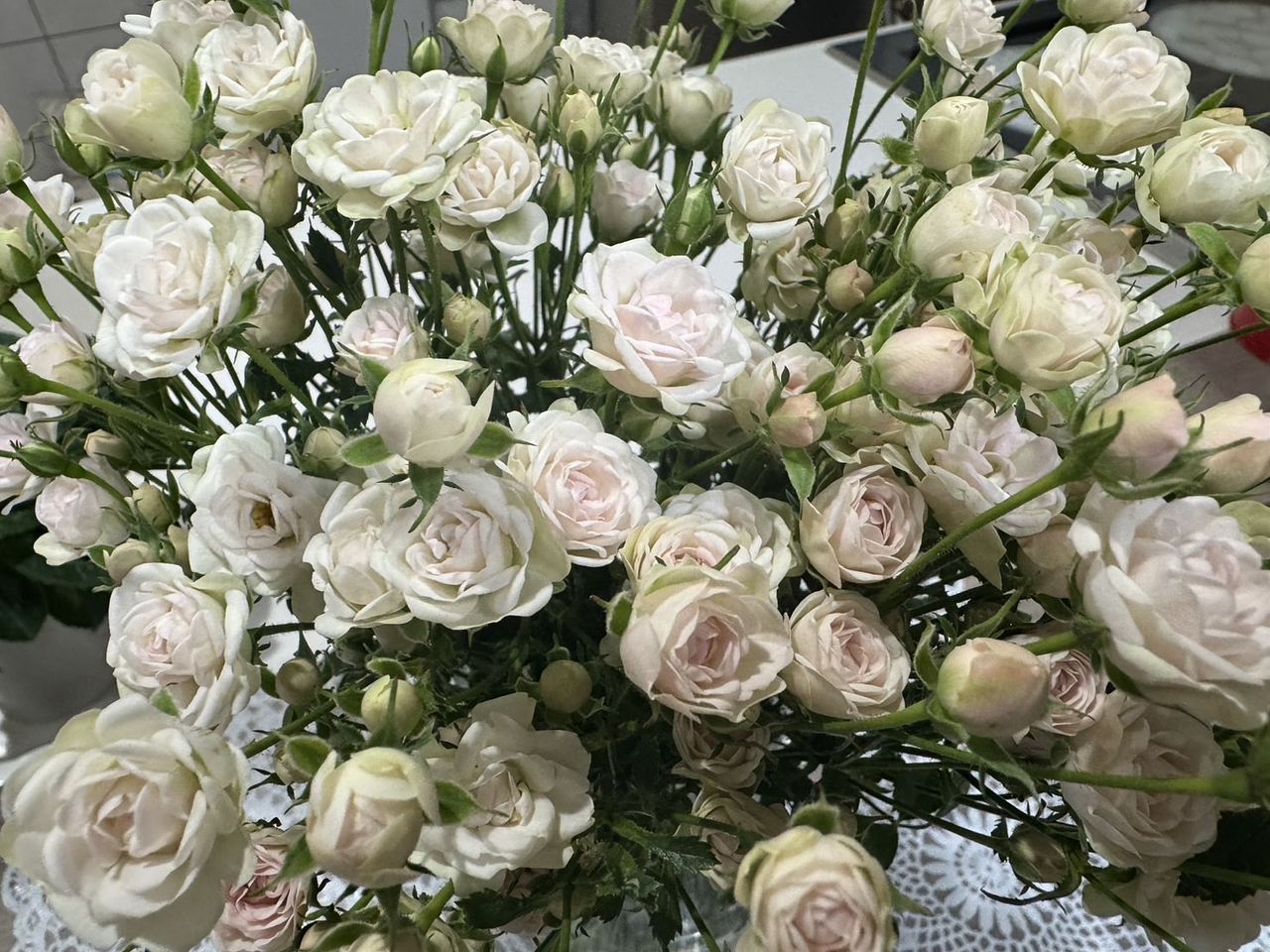 本当に小さいです🌹蕾はかすみ草くらい。葉とトゲの処理が大変で時間に余裕があるときでよかった😅全体的に茶色がかっていたので長持ちするか心配ですが小さく可愛いバラです。
