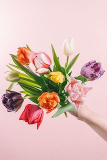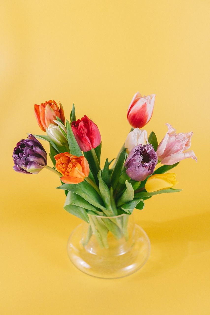 早くもお花の世界では春が訪れました🌷ショートサイズのチューリップだけを束ねて。