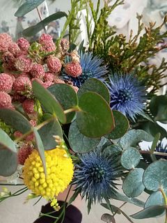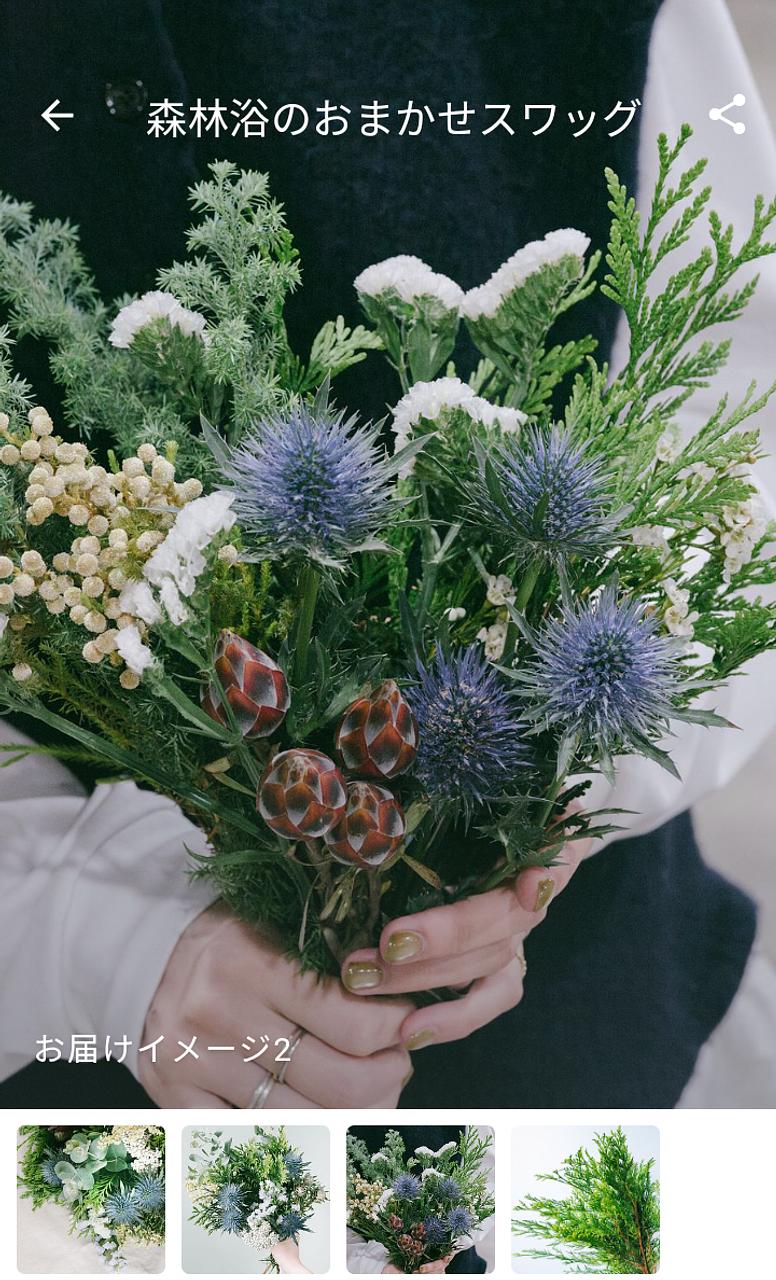 おまかせ商品何度か利用していますがなかなかイメージ通りとはいかず、、難しいですね 色合いだったり内容だったり、自身の森林浴にはちょっとカラフル過ぎました レビューを見ると様々なので運かな 安く手にはいるのは嬉しいけれど…白い実も花も、プルモサスも入っていて欲しかったな 見本で蕾が4つも入っていて期待し過ぎました 手持ちの花材で調整し生けて、少し飾ったらスワッグにします