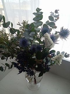イメージしていたよりもグリーンが濃く、香りも重厚に思いますが、素敵です。今は花瓶に入れて楽しみ、後ほど下げてみようと思います。こういう色合いの花束を店頭で買うことは考えられなかったので、とても嬉しいです。