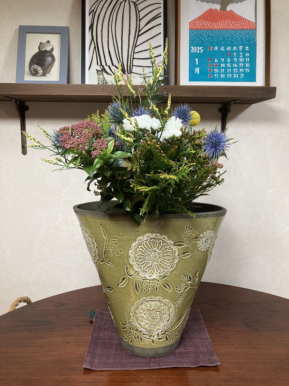 配色が素敵なスワッグでしたがスターチスが2本折れていたので残念でした😢