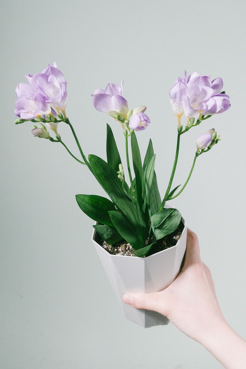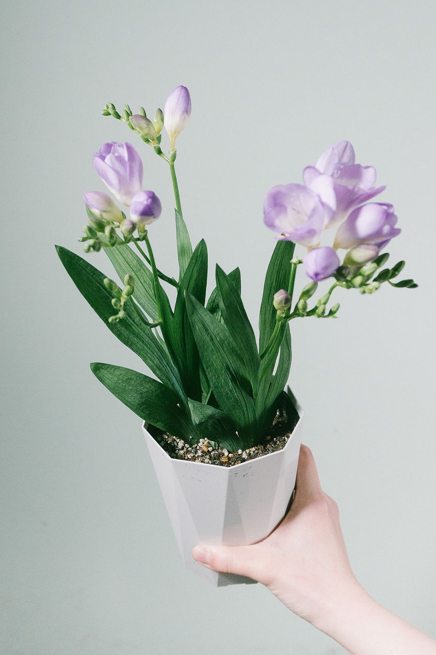 フリージアの中でも花が大きいハイブリッド種。甘い香りを長くお楽しみいただけます。シワシワになったお花は咲き終わりの合図!根元から優しく摘んであげると次のお花が咲きやすくなります。ぜひお試しを!