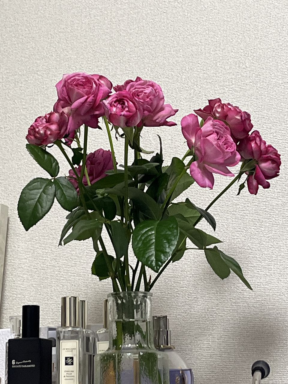 下を向いている状態のバラが1本、花びらが取れそうになっているバラも4本ありました。今まではよい状態の花だったので残念です😢