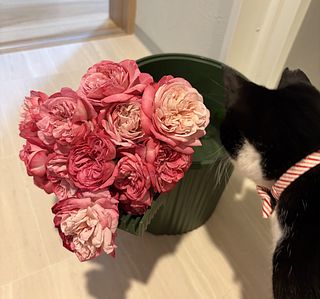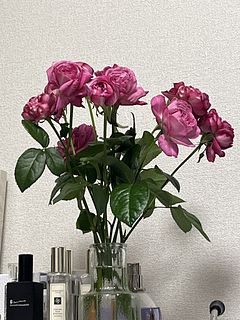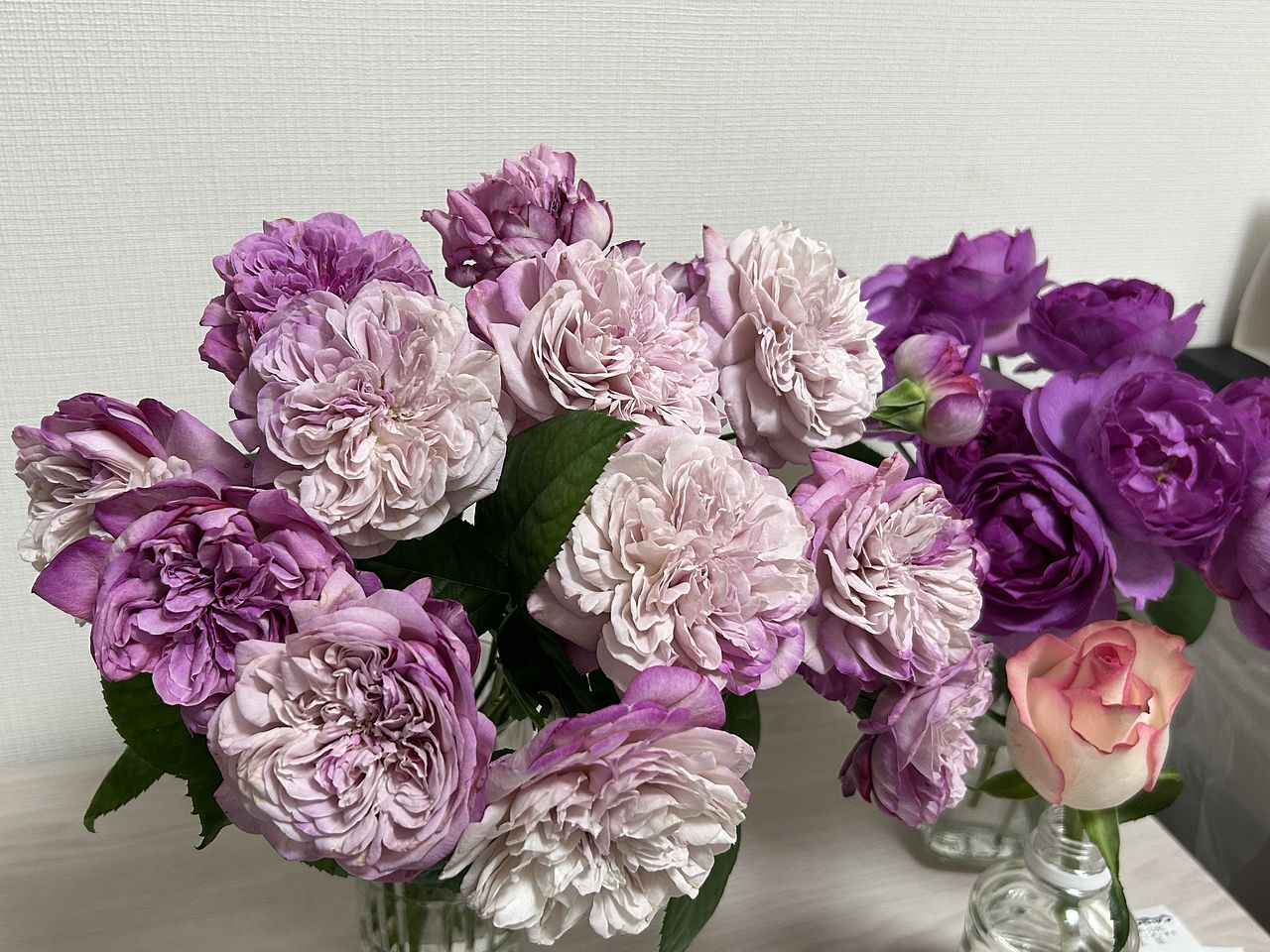 蕾は1本でしたが、届いて5日目で蕾以外は超満開 色はワイン薄いピンク、ホワイトまでグラデーションになってシックな感じです。香に癒されてます。 前日に届いた子の香もあり過去一の贅沢。