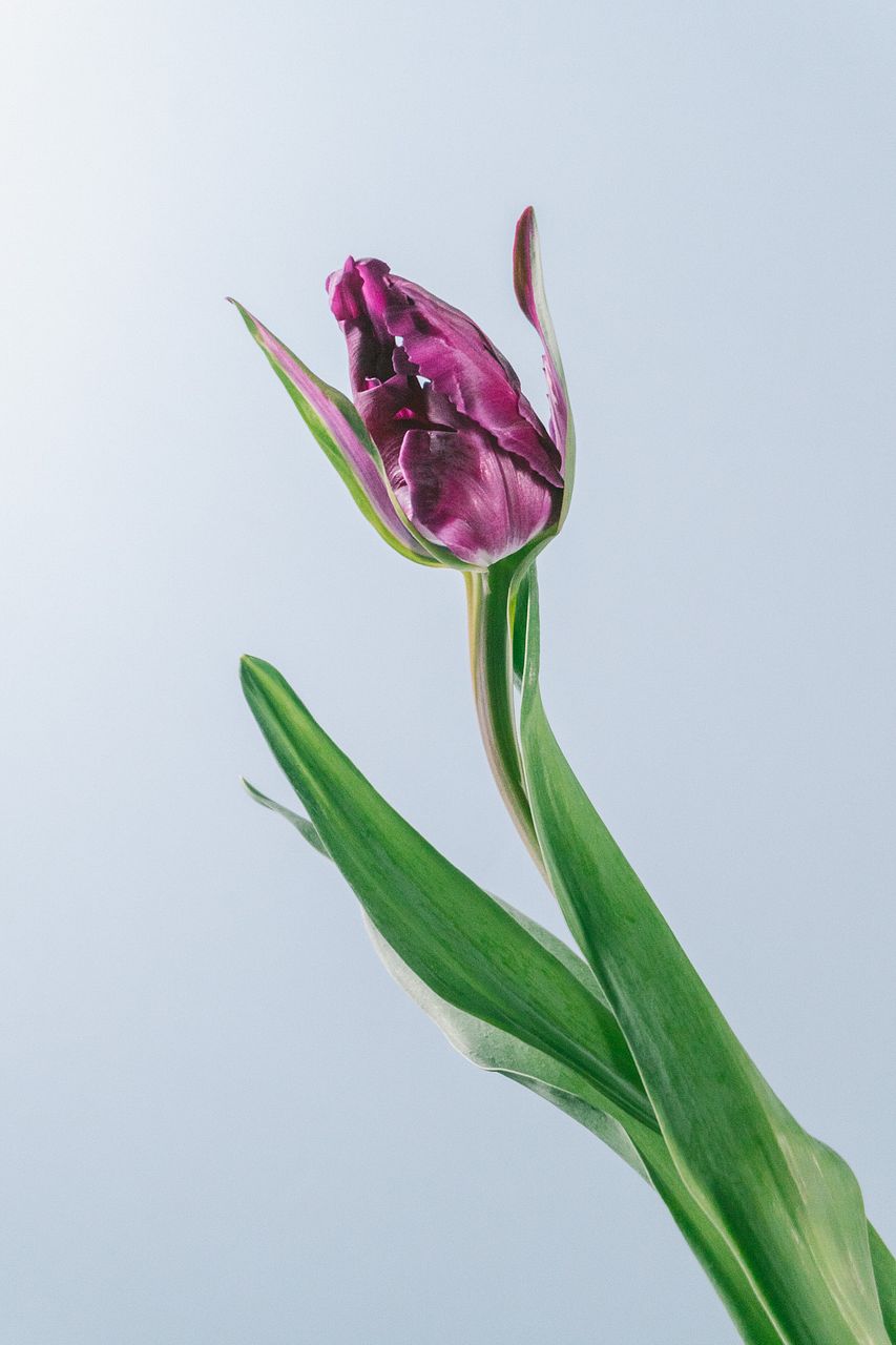 深みのあるパープルに、パーロット咲きが美しいシックなチューリップです