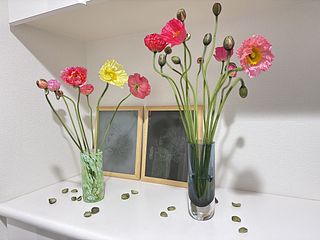ポピーは俯きがち。紙に巻いて水揚げを行ってみて。