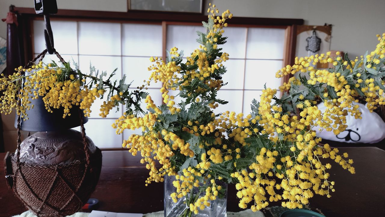 フレッシュなミモザだと思っていたらほぼドライフラワーでした。花自体がそんな感じなのかもしれないですが。