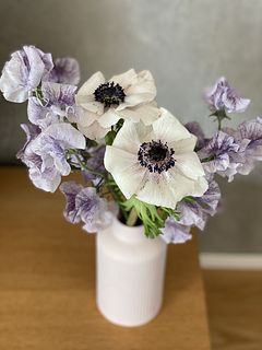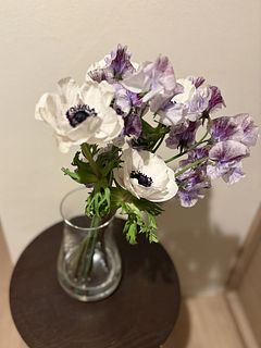 とても素敵なスィートピーとホワイトアネモネが大人かわいい感じでとても気に入りました💕 ちょっと残念だったのが一本のアネモネが折れていて🥲 でも短くして小さな花瓶に一輪挿しにしました☺️ ホワイトアネモネははじめてでしたがいい雰囲気ですね☺️✨