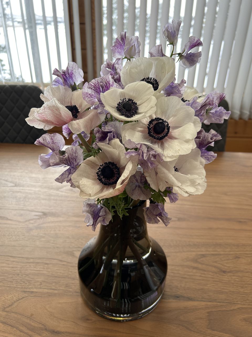珍しい色合いのスイートピーと立派でしっかりしたアネモネでした🩷香りがほんのりでもう少ししっかり香ってもいいかなぁ。