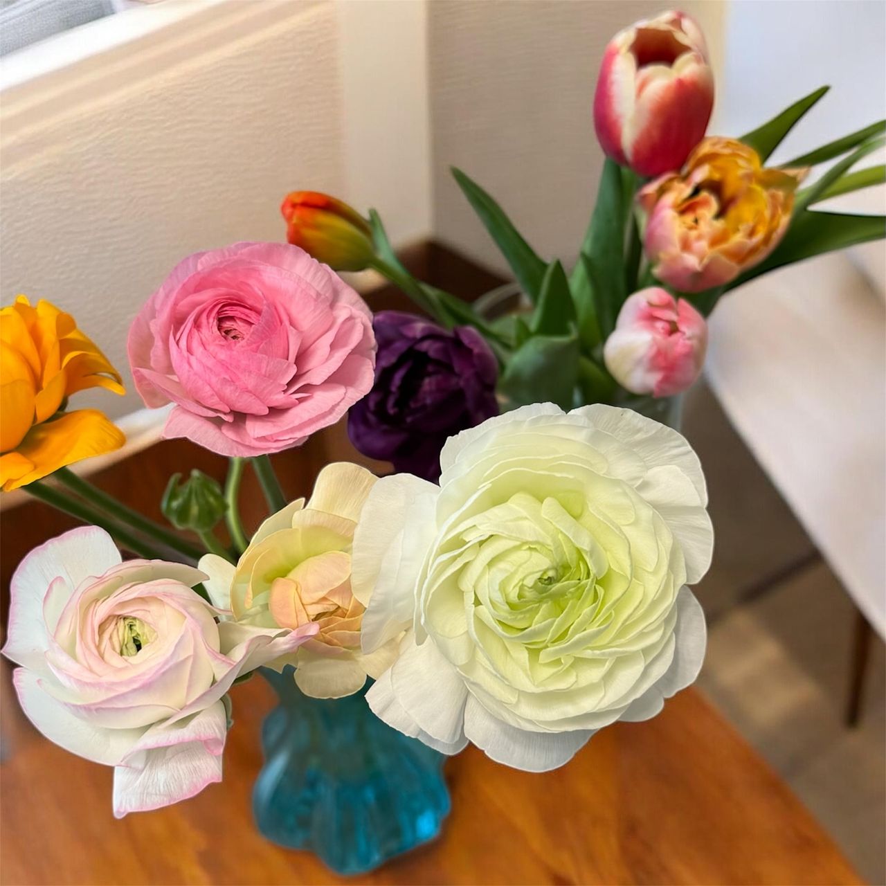 沢山のチューリップやラナンキュラスがお部屋を明るくしてくれます*.🌷.*