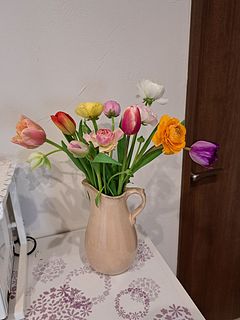 この時期、暖かいリビングですぐに終わってしまわないように玄関と洗面所に飾っています。 どちらも1日のスタートとゴールに時間を過ごす家の場所なので良く飾ります。気持ちがいいです。 今回はチューリップとラナンキュラス分けて飾りました。どちらも可愛らしい色合いでとても気に入っています。