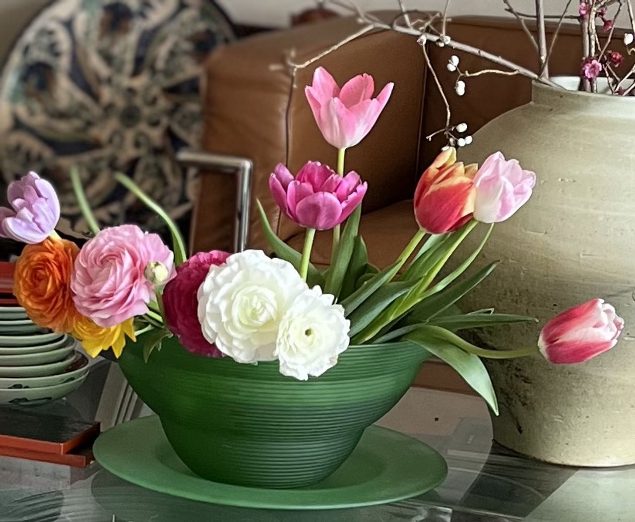 とっても可愛いらしいチューリップとラナンキュラスが届きました。 一気に家の中が明るくなりました。