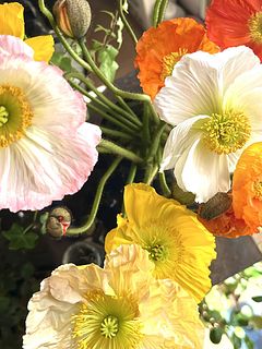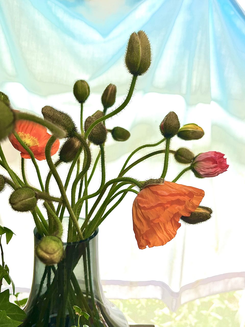 ポピーの季節がやってきました!おじぎをしたような蕾と、くしゃっとした花びらが愛らしいお花🌼