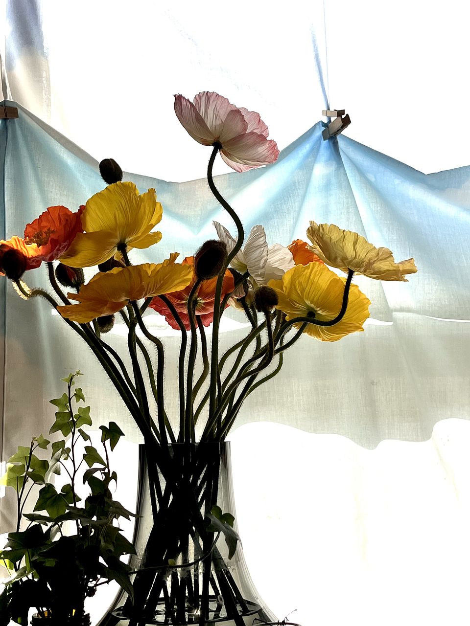 ポピーは俯きがち。紙に巻いて水揚げを行ってみて。