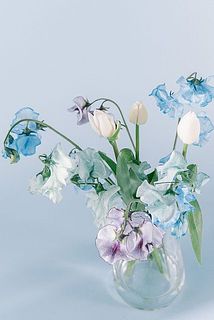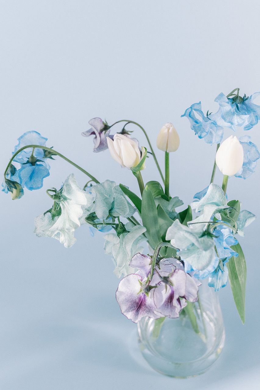 青や水色、やわらかな紫が重なり合う、涼やかな色合いのブーケ。まるで青空の中に咲くチューリップのイメージのようなブーケです😍