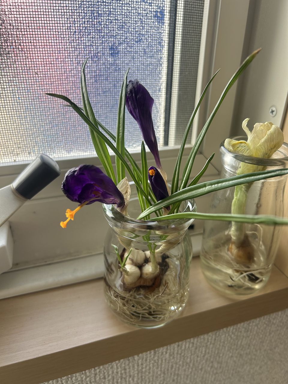追記:アイリス?の紫と白が咲きましたがすぐに枯れてしまいました💦何がいけなかったのかな。