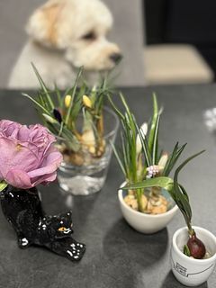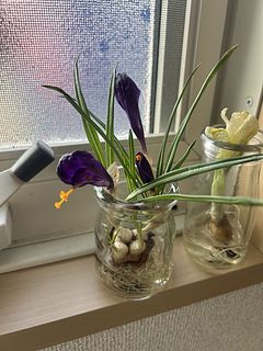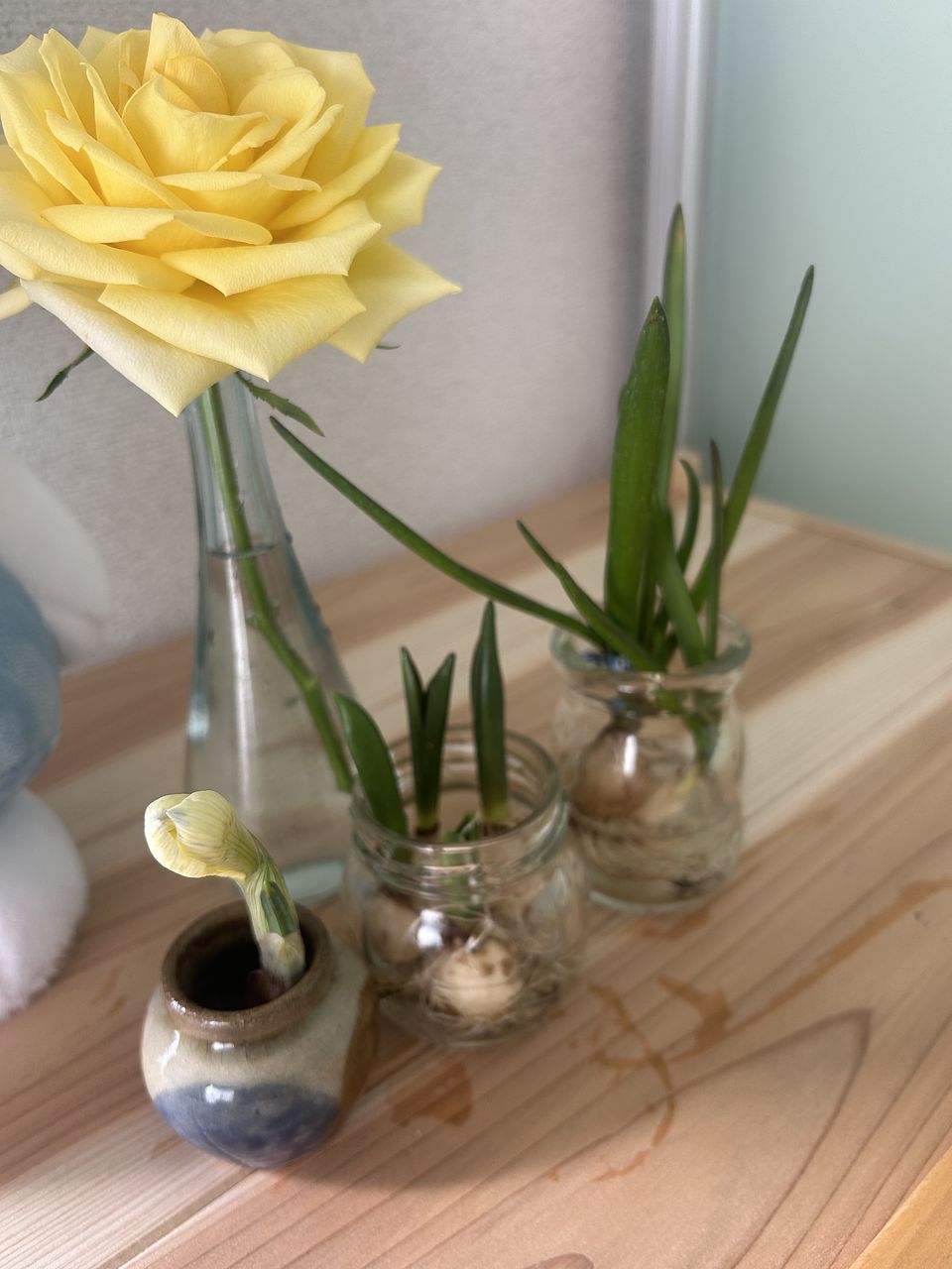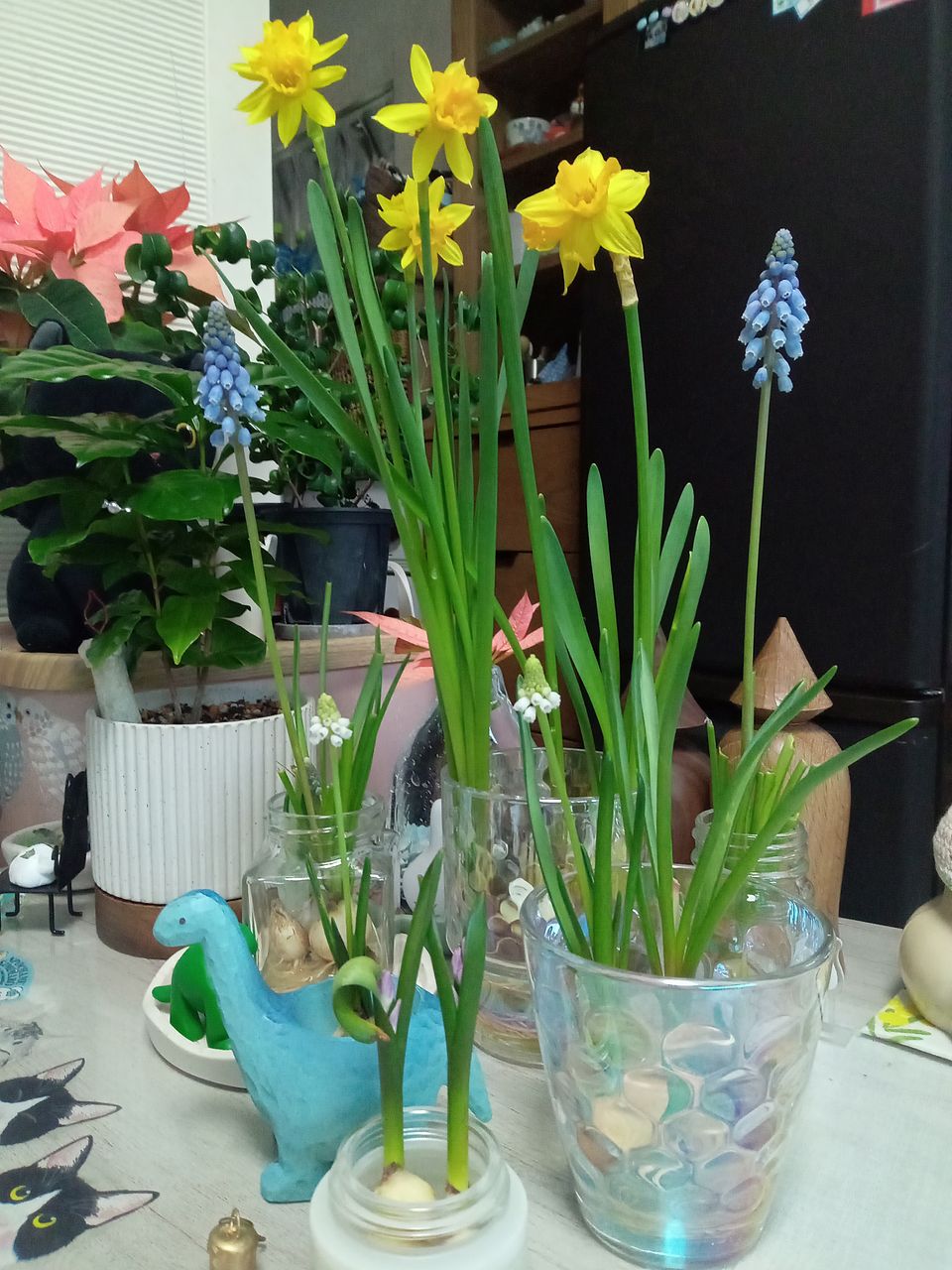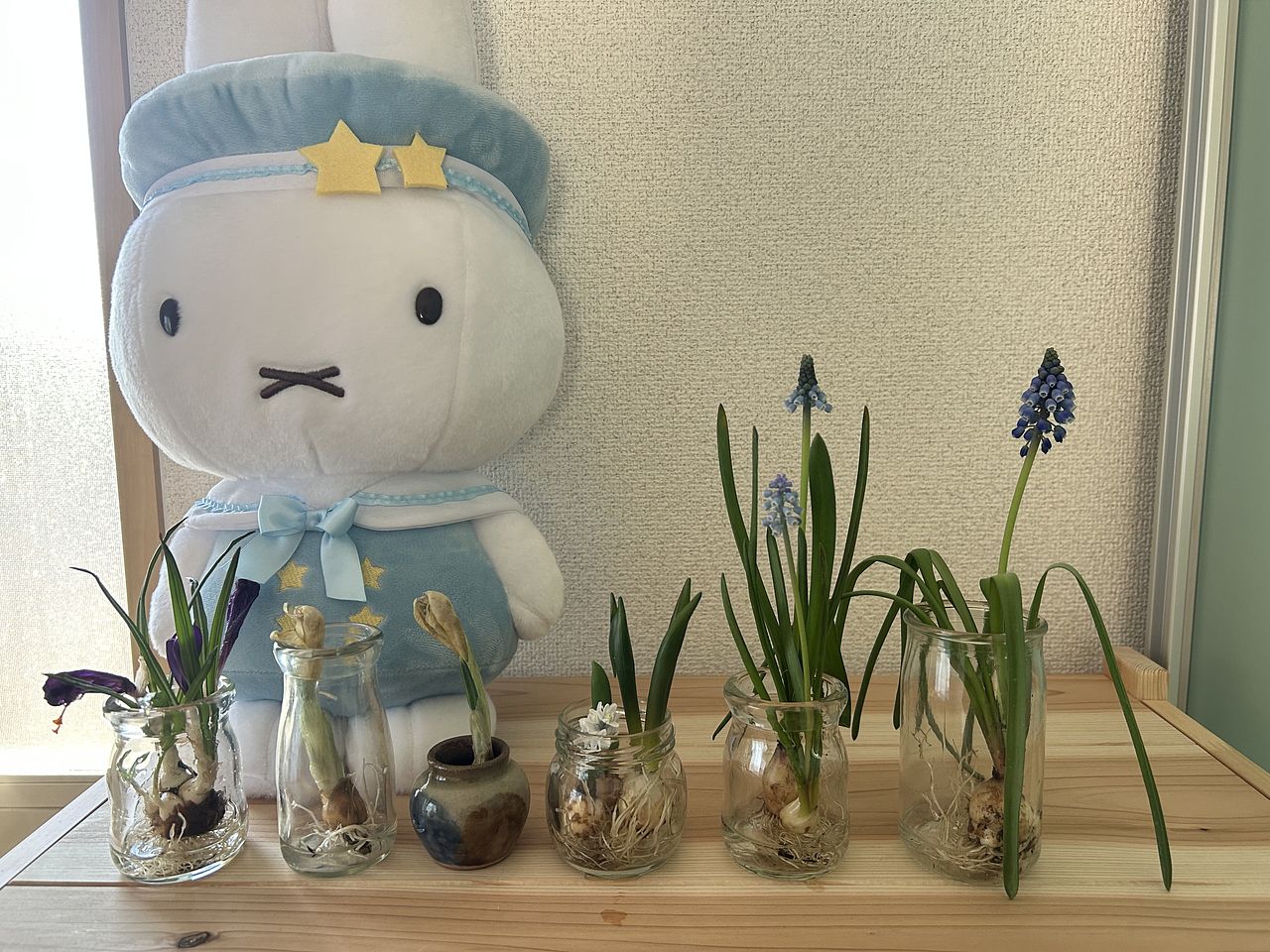 残りのムスカリ2株は葉が徒長しているのか垂れてしまいそうなのでペットボトルで養生中です🥲